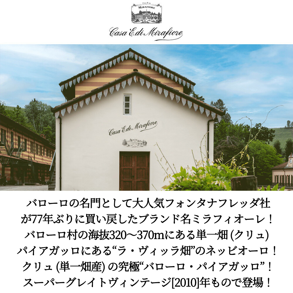 造り手は、あのピエモンテ州バローロの名門として大人気のフォンタナフレッダ社が、77年ぶりに買い戻したブランド名ミラフィオーレ!