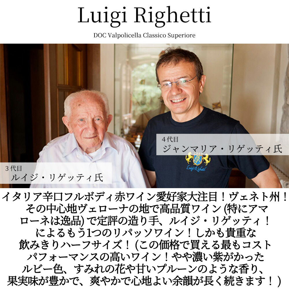 ピエモンテ州、トスカーナ州と並ぶワインの銘醸地、ヴェネト州!その中心地ヴェローナの地で高品質ワイン (特にアマローネは逸品) で定評の造り手、ルイジ・リゲッティ!によるもう1つのリパッソワイン!しかも貴重なハーフサイズ!