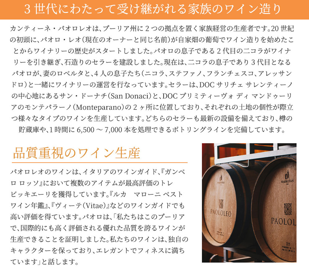 ■ぶどう品種:プリミティーヴォ種100%