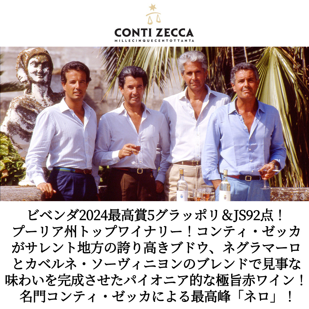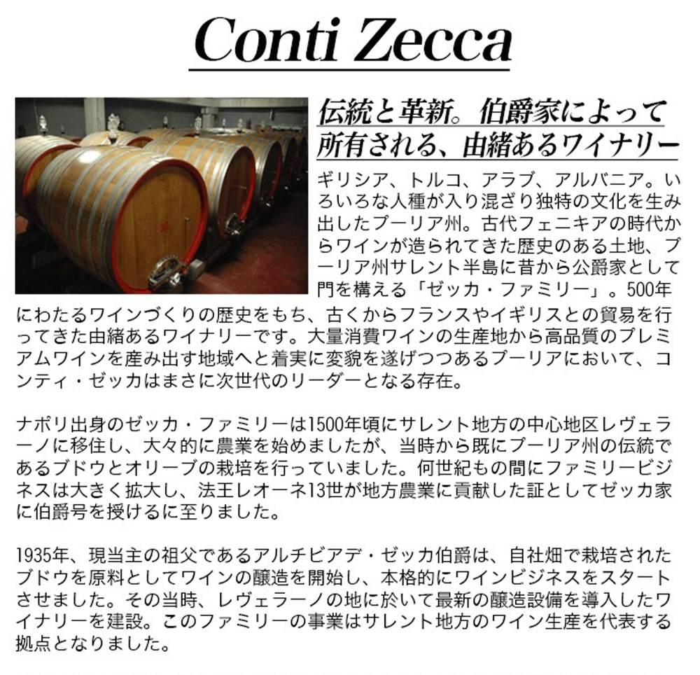 プーリア州でガンベロ・ロッソ誌でトレ・ビッキエーリを10回獲得した数少ないスターワイナリーとして知られており、イタリア国内に限らず海外でも大注目の大御所生産者コンティ・ゼッカによる最高峰「ネロ」!