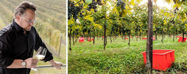 アルコール発酵後は、5~6ヶ月澱とともに熟成させています。輝きのある麦わら色、リンゴやバナナのアロマ、バニラの上品なブーケとデリケートな白い花のニュアンス。バランスのよい酸味、心地よい余韻が感じられます。
