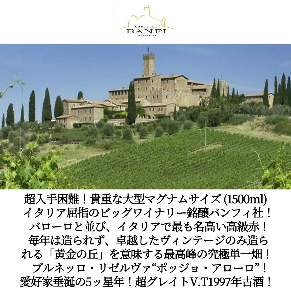 ずばりブルネッロ・ディ・モンタルチーノを世界に広めたバンフィ社による「黄金の丘」を意味する最高峰畑“ポッジョ・アローロ”!