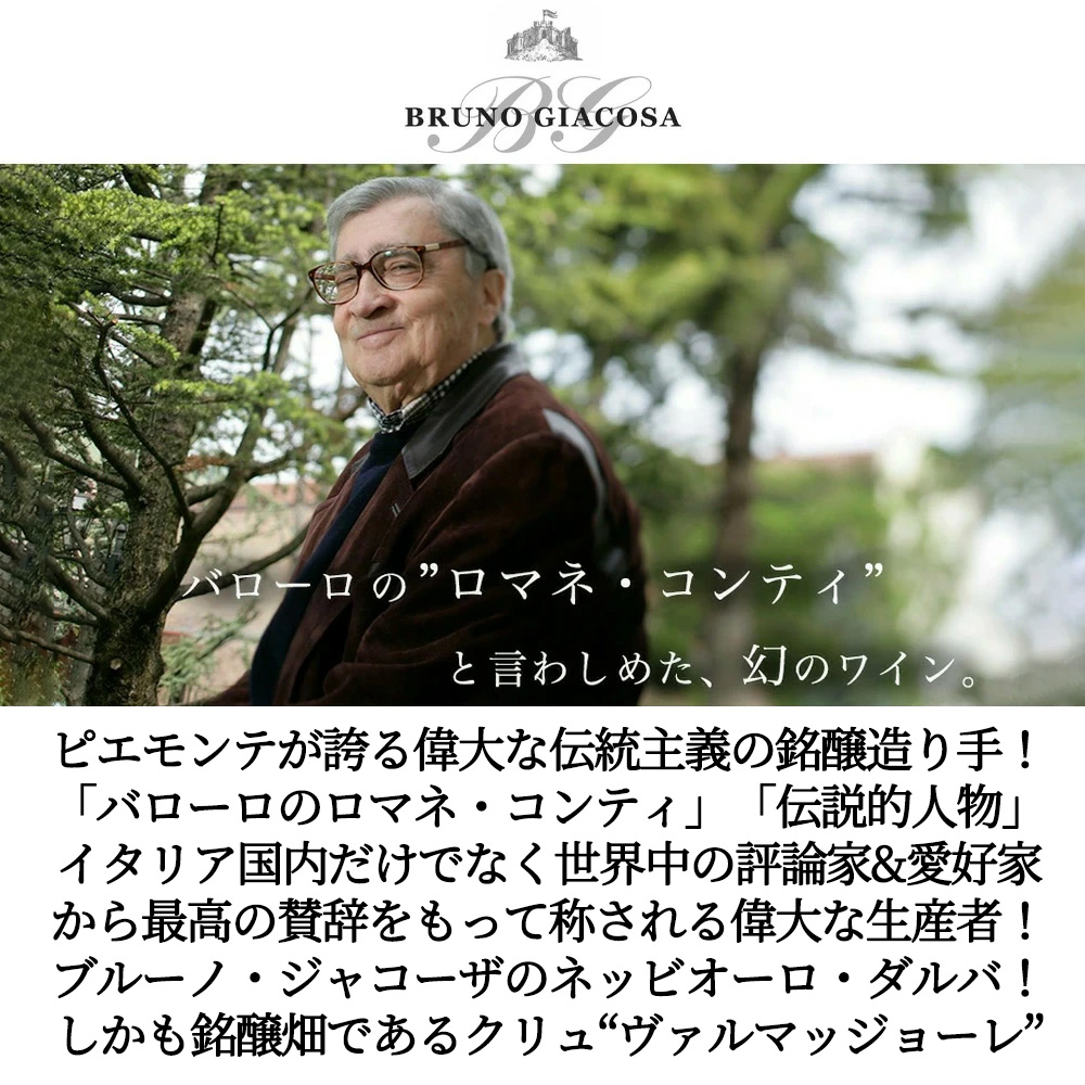 このヴァルマッジョーレも凝縮感ある黒果実の風味が強く、きめの細かいタンニンが特徴で飲み応えのあるヴィンテージ!ジャコーザのバローロやバルバレスコに相通ずる深い旨みを味わえる高品質なクリュ・ネッビオーロ!偉大造り手ブルーノ・ジャコーザの究極ネッビオーロ・ダルバが限定で少量入荷!