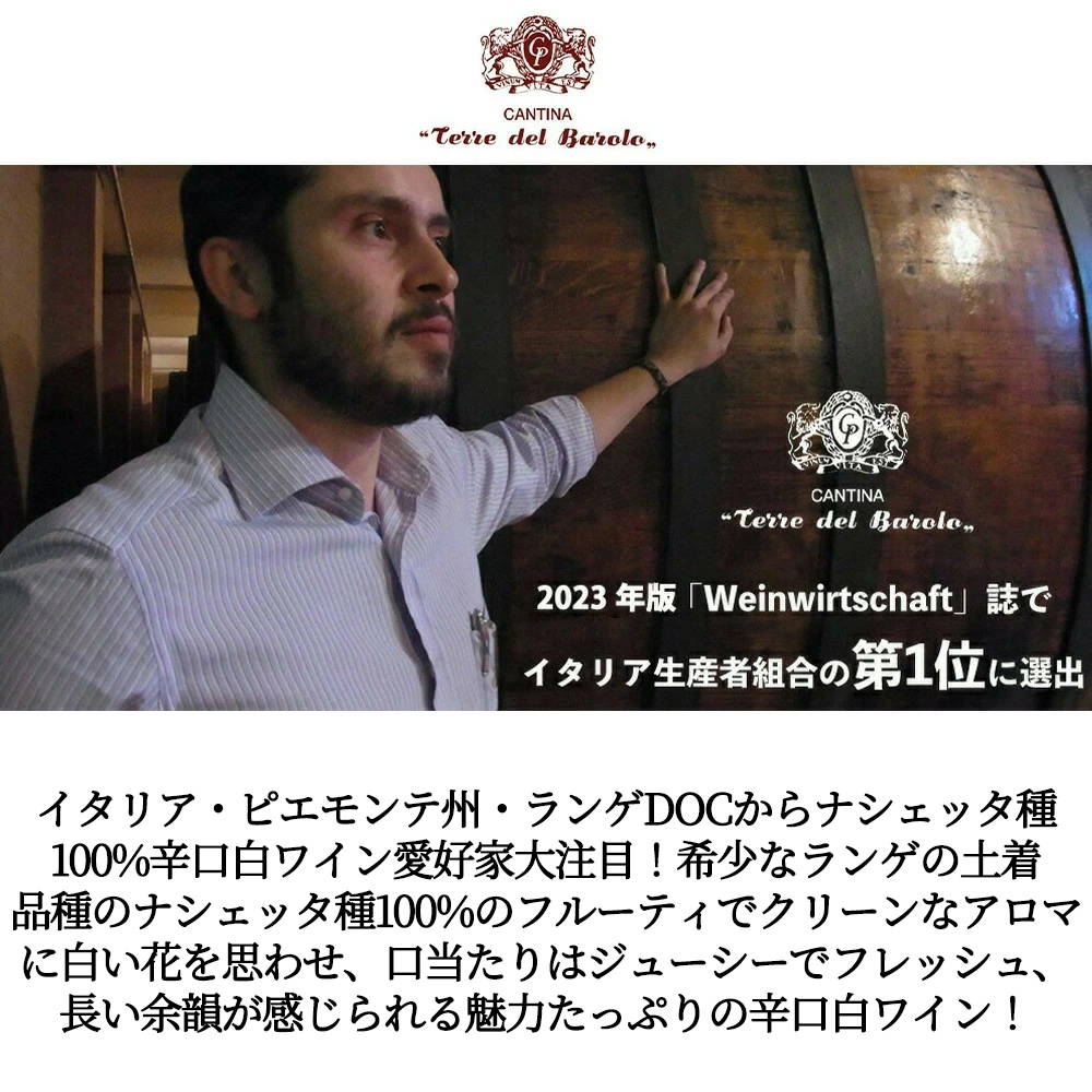 希少なランゲの土着品種のナシェッタ種のフルーティでクリーンなアロマに白い花を思わせる要素が魅力の辛口白ワイン!