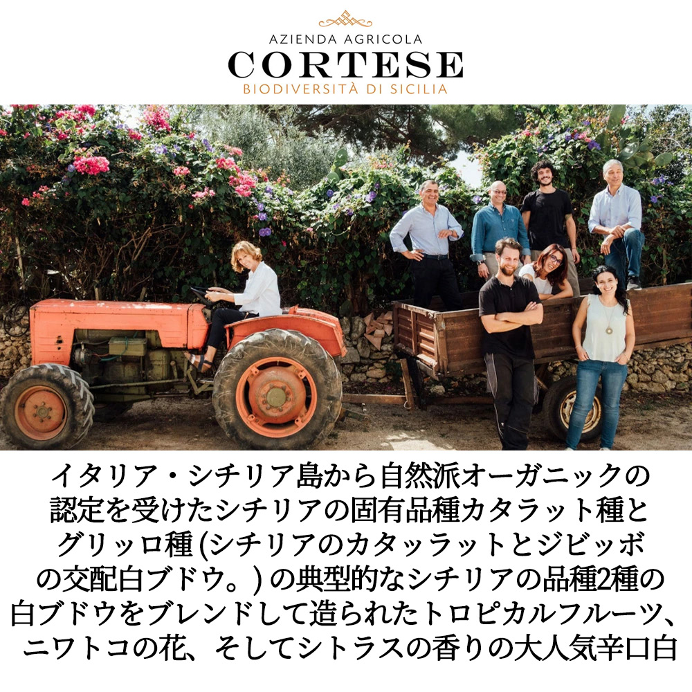 シチリア島から自然派オーガニックの認定を受けたシチリアのカタラット種とグリッロ種のシチリアの典型的な品種2種の白ブドウをブレンドして造られた大人気白ワイン!