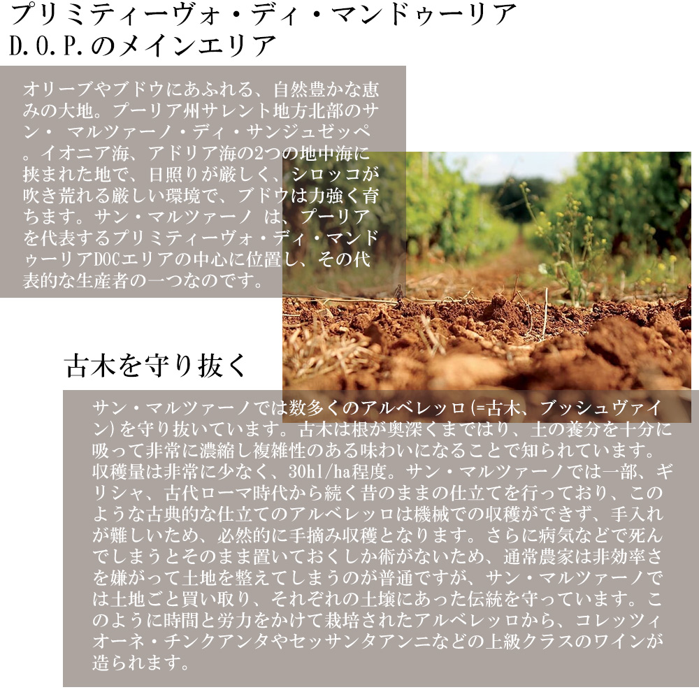 玉手箱でも大人気サン・マルツァーノ社からネグロアマーロ種100%の最高峰赤ワインが限定で待望入荷!