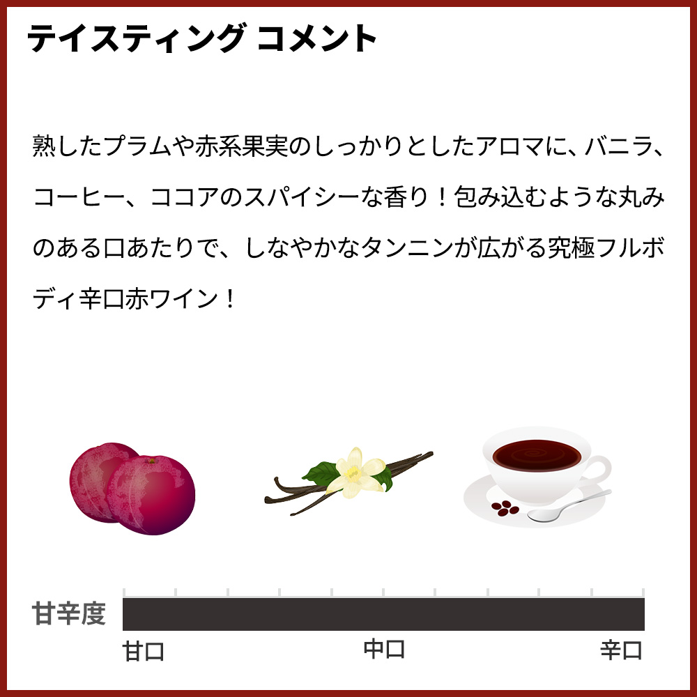 色は深みのあるルビーレッド!熟したプラムや赤系果実のしっかりとしたアロマに、バニラ、コーヒー、ココアのスパイシーな香り!包み込むような丸みのある口あたりで、しなやかなタンニンが広がる究極フルボディ辛口赤ワインがタトゥーラベルで限定で極少量入荷(ワインバー様やカフェバー様のグラスワインにも超おすすめです。)