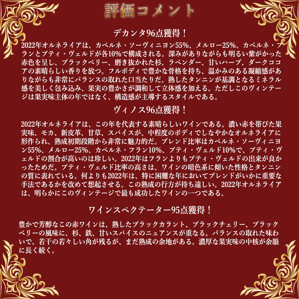 世界の目をトスカーナに向けさせ、ボルゲリの頂点に君臨するスーパーワイン!オルネッライア!