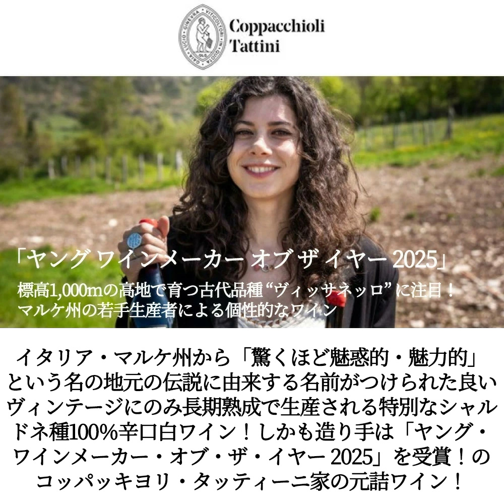 入手困難!イタリア・マルケ州から「驚くほど魅惑的・魅力的」という名の地元の伝説に由来する名前がつけられた特別なシャルドネ種100%辛口白ワイン!