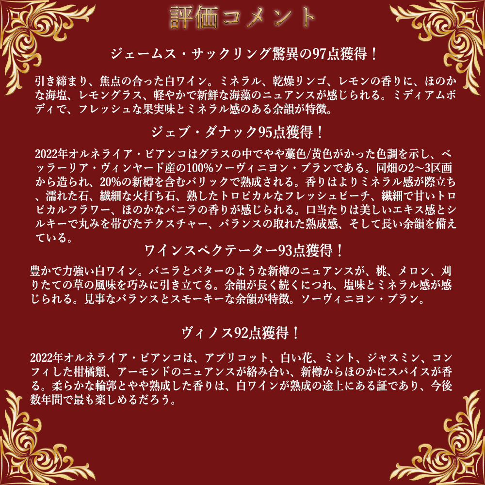 今や市場でもほとんど入手することが難しい最高級オルネッライアの偉大白ワインが高評価[2022]年で正規代理店輸入品で限定少量入荷!