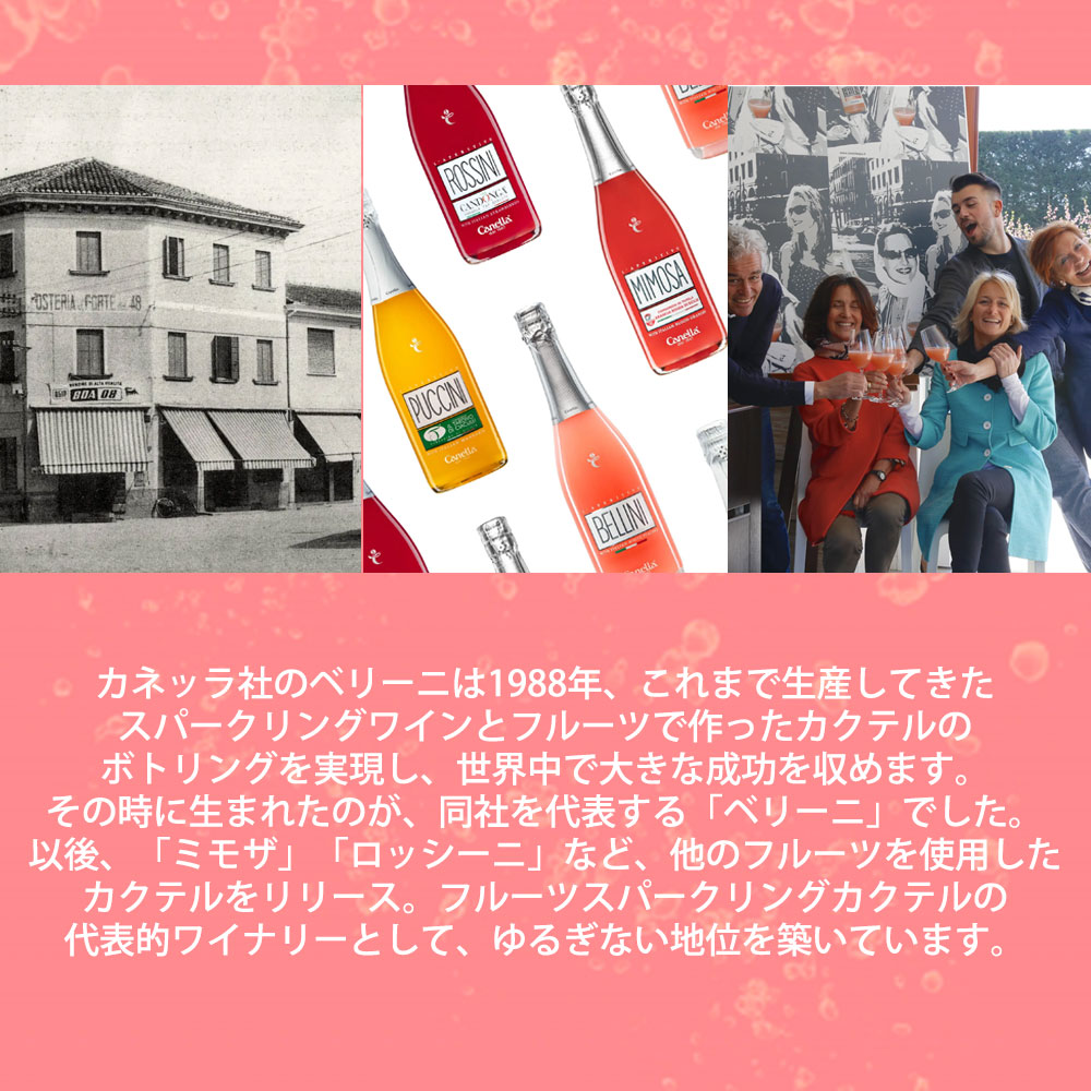シチリア産の完熟した3品種のブラッドオレンジとカネッラ社自慢のプロセッコを丁寧に選別し絶妙にブレンド!