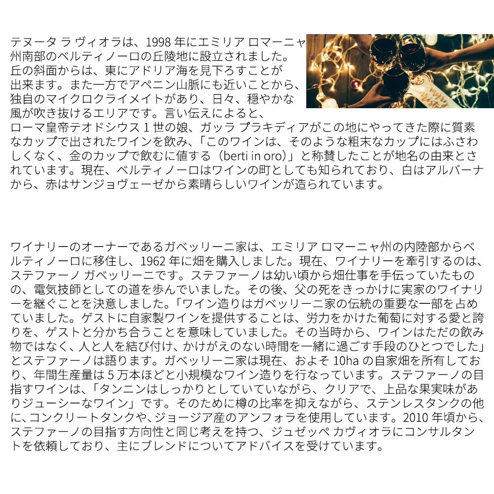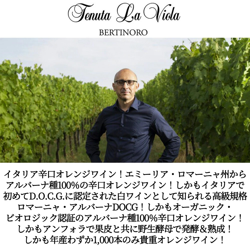 エミーリア・ロマーニャ州からアルバーナ種100%の辛口オレンジワイン!しかもイタリアで初めてD.O.C.G.に認定された白ワインとして知られる高級規格ロマーニャ・アルバーナDOCG!しかもオーガニック・ビオロジック認証のアルバーナ種100%辛口オレンジワイン!