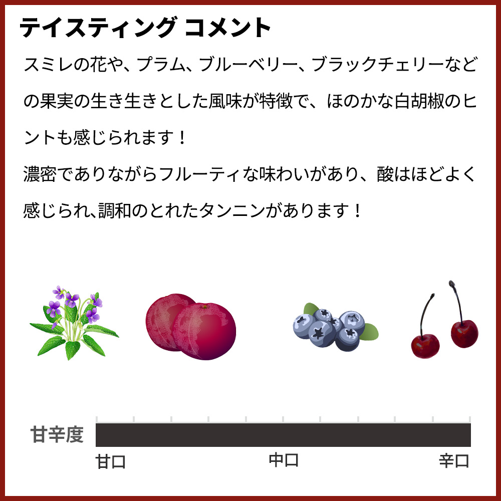 それぞれの品種の良さがバランスよく調和し、豊かな果実味に満ちあふれたワイン!