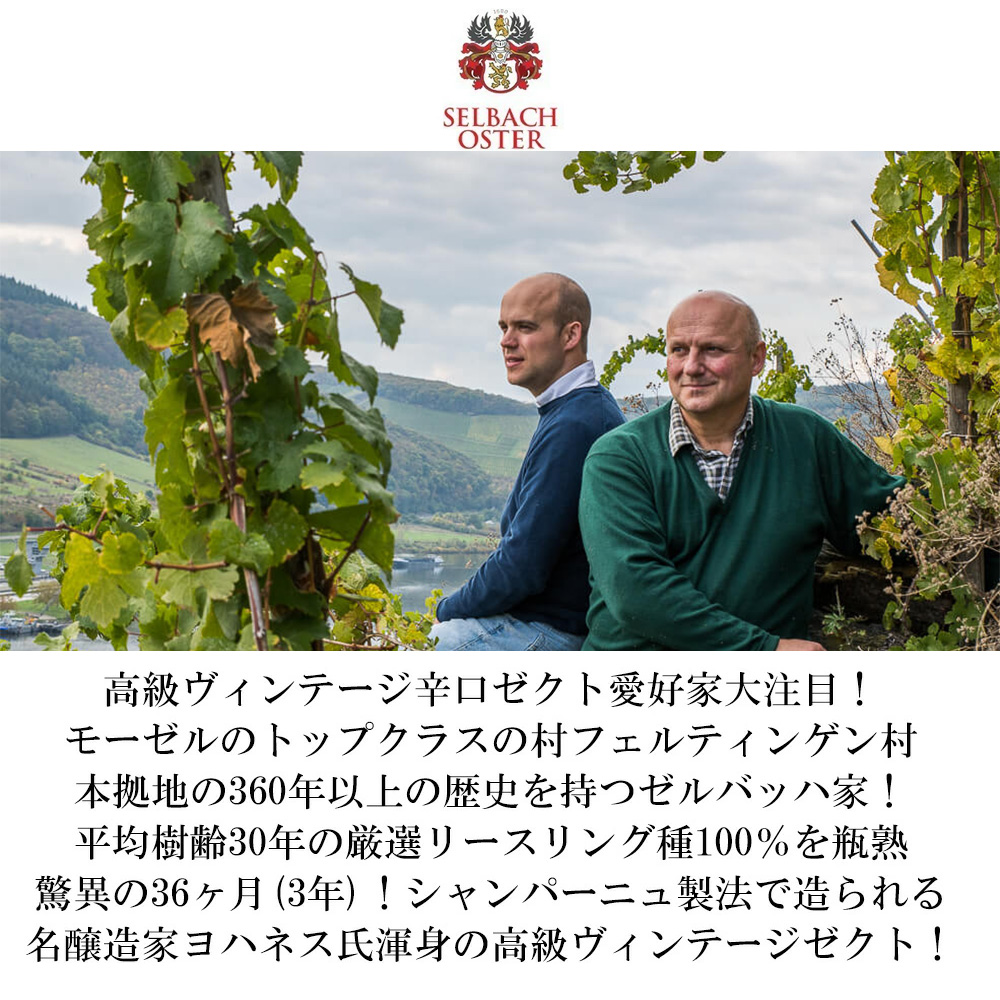 ドイツ・モーゼル屈指の1661年より伝統ある醸造所で360年以上の歴史を持つ名門生産者であり、「ゴーミヨドイツワインガイド 」でも4つ房獲得!のゼルバッハ家の渾身ゼクト!