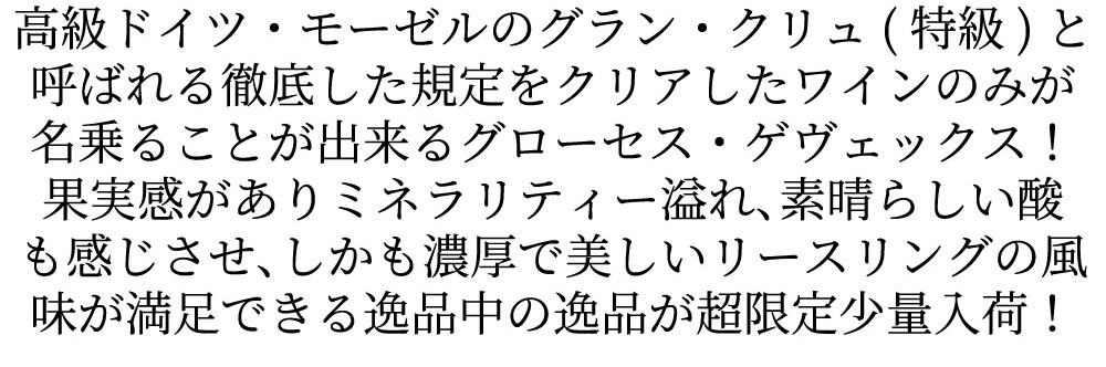 「甘いのに甘くない!?」 オリヴァーの造るワインの特徴は、甘く感じないことです。アウスレーゼであっても料理に合わせられるようなイメージで、アウスレーゼ ゴルトカプセルのようにトロリとしたものでも、驚く程さっぱりと飲むことが出来ます。 「和食と相性抜群」 オリヴァーはアジアを訪れ、「気候、料理共にドイツワインに合っている、特に日本食が一番」と感じたそうです。