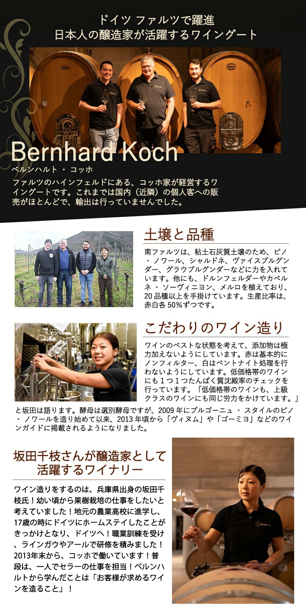 ドイツファルツで躍進中の日本人の醸造責任者が活躍するワイングート!ベルンハルト・コッホから、『熟した野生のベリーや皮の黒い果実の豊かなアロマ』の本格派辛口赤ワイン!
