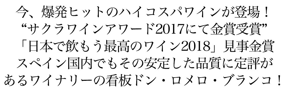 ドン ロメロ ブランコ 白 NV ドン・ロメロはモンセラットとそこを訪れる巡礼者に敬意を表して名づけられました。 この地は安定した地中海性気候に恵まれている為、ブドウの品質に年ごとの大きなばらつきが少なく、良質なブドウを安定供給できる産地で、特にカヴァの生産においてはそのほとんどがサン・サドゥルニ・ダノイア地区で生産されています。 このドン・ロメロ・ブランコは、マカベオ、アイレン主体で造られる、色は緑がかった淡い黄色。 青りんごや洋ナシなどのフルーツの香りが強く感じられ、フレッシュでドライな味わいは、口当たりが良く、程よい酸とフレッシュさが心地よく感じられます。 スペインを代表するブドウ品種を使用した、溌剌とした酸味が特徴的なコスパ抜群の極旨スパニッシュです。