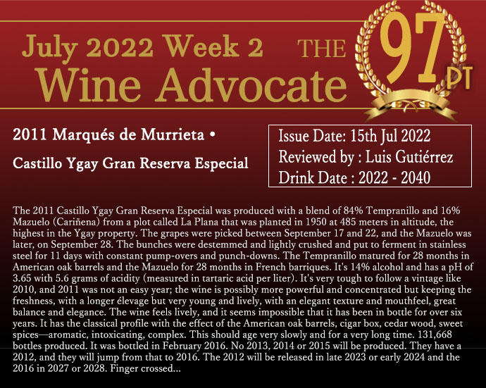 マルケス デ ムリエタ カスティーリョ イガイ グラン レセルバ エスペシャル 2011 蔵出し品 赤 辛口 フルボディ 750ml ■ぶどう品種:テンプラニーリョ種85%/マスエロ種15% ■土壌:石灰粘土質で石の多い土壌 ■樹齢:1952年に植樹された古樹 ■熟成:フレンチ&アメリカンの225Lのオーク樽で28ヶ月熟成&瓶熟成48ヶ月以上熟成 100年以上も前からリオハ最高ランクのワインとして知られる銘柄「カスティーリョ・イガイ」!使用されるブドウは、単一畑ラ・プラーナで生み出されます! ロバート・パーカー最高評価、満点★★★★★5つ星生産者です! 日本では田崎真也氏が優勝した、「第8回世界最優秀ソムリエコンクール」のファイナルのテイスティングに出たワインとしても有名! ヒュー・ジョンソン氏も「ポケットワインブック」の中で「極めて優良な赤のカスティーリョ・デ・イガイ」と絶賛!正規品の蔵出し品で限定少量入荷!