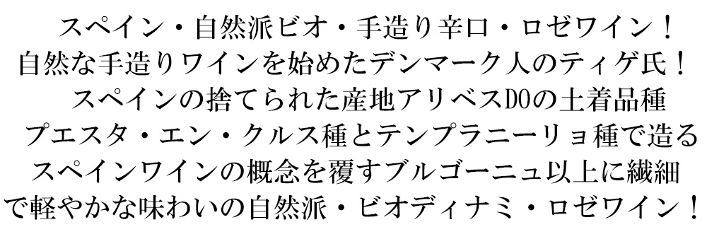 このワインは、スペインの超田舎地域アリベスDOで造られた究極の自然派・ビオディナミ・ロゼワインだ。