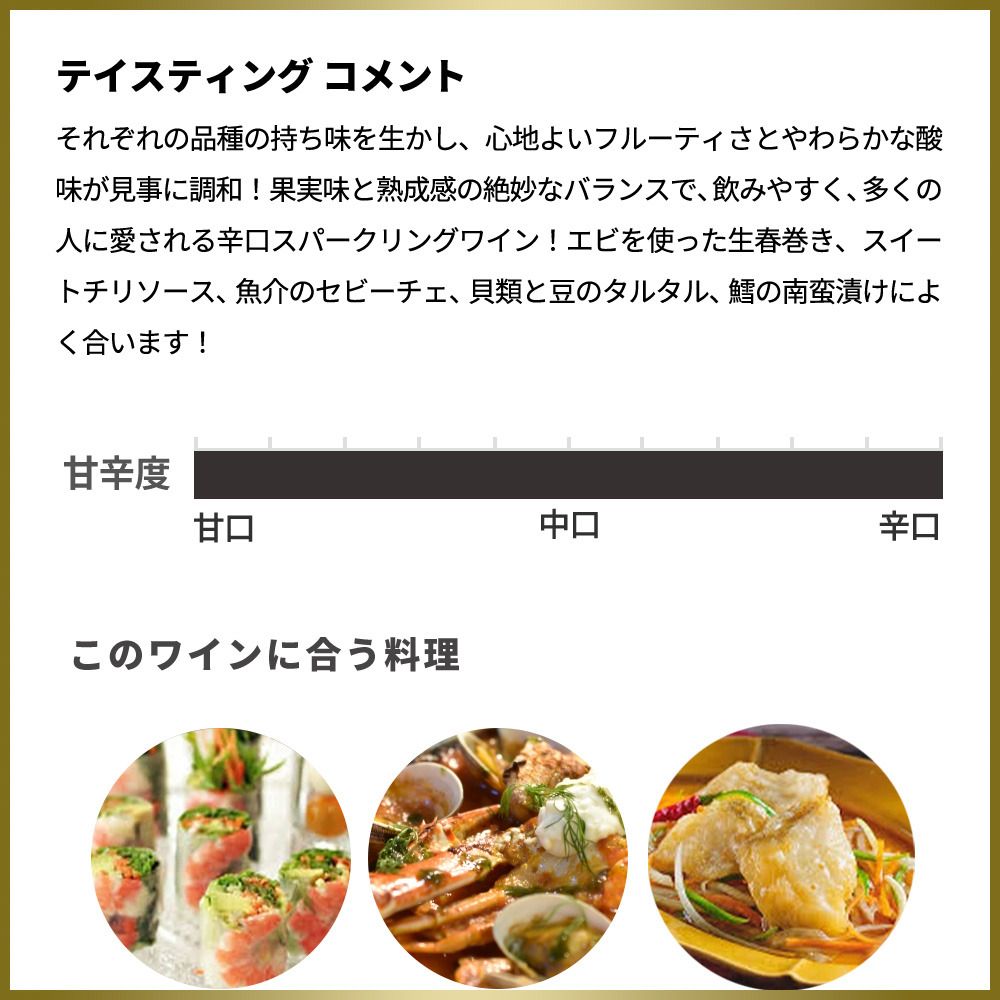 それぞれの品種の持ち味を生かし、心地よいフルーティさとやわらかな酸味が見事に調和!果実味と熟成感の絶妙なバランスで、飲みやすく、多くの人に愛される辛口スパークリングワイン!ロジャー・グラート・ゴールド・カヴァが待望入荷!