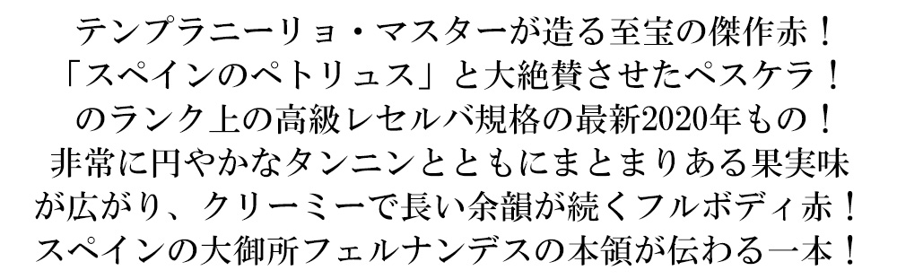 ベガ・シシリアと並ぶリベラ・デル・デュエロD.Oの大人気辛口赤ワイン!ロバート・パーカー氏に満点★★★★★5つ星生産者に挙げさせ「スペインのペトリュス」と大絶賛させたペスケラ!のランク上の高級レセルバ規格の最新ヴィンテージ[2020]年もの!
