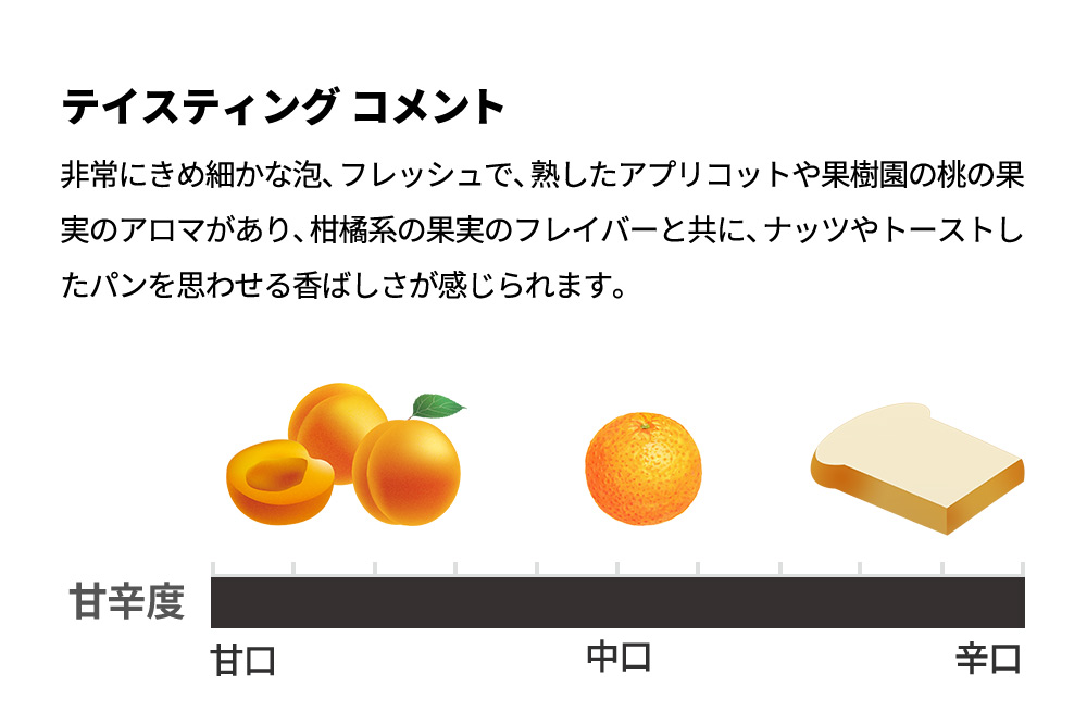 軽いマセラシオンを行った後、ベースワインをボトリングした後、深さ30mの地下セラーで48ヶ月熟成庫でゆっくりと寝かせます。