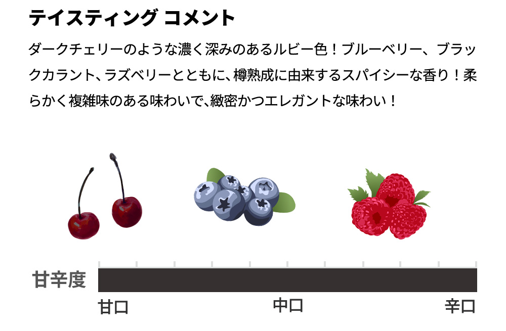ジャームス・サックリング驚異の94点でコメントは「トーストしたオーク、コンソメ、肉、ドライレモンの含みを持つ、非常にクラシックなキャラクター。ミディアムボディでキレのあるしっかりとしたタンニンがある。」!