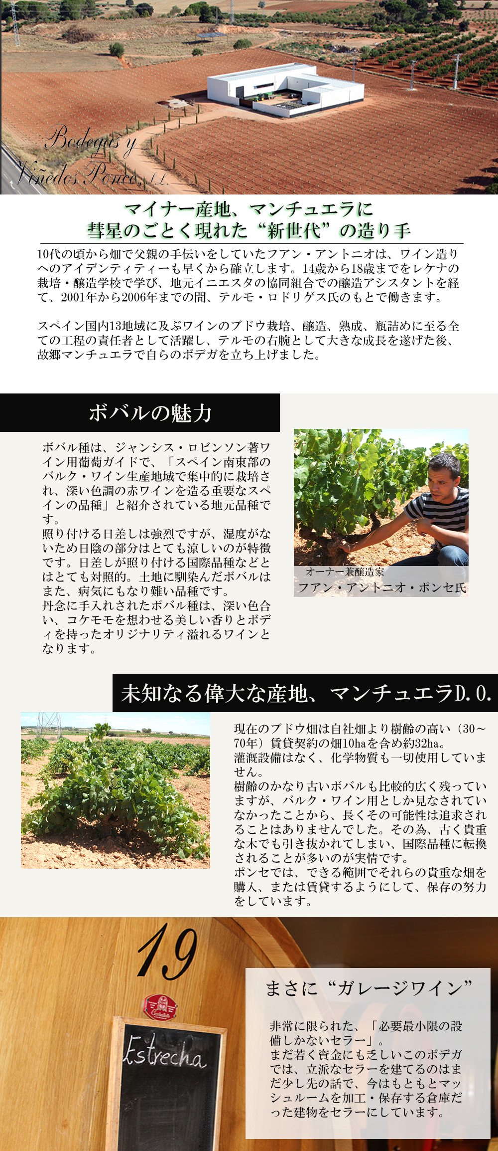 “マイナー産地”、“マイナー品種 ボバル種”ハンデと言われたもの全てを個性に昇華したボデガ!マンチュエラに彗星のごとく現れた“新世代”の造り手ボデガス・イ・ビニェードス・ポンセ!スペインの新しい流れを象徴する醸造家フアン・アントニオ・ポンセ氏により設立されたワイナリーのエントリーワイン“クロス・ロヘン”が待望入荷!