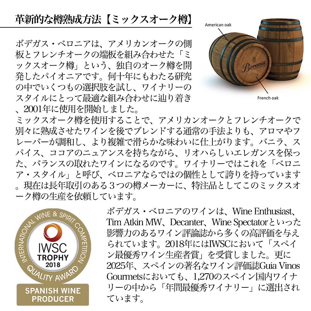 ■熟成:オーク樽18ヶ月(225L、70%アメリカンオーク、30%フレンチオーク、新樽比率70%) 、瓶熟18ヶ月