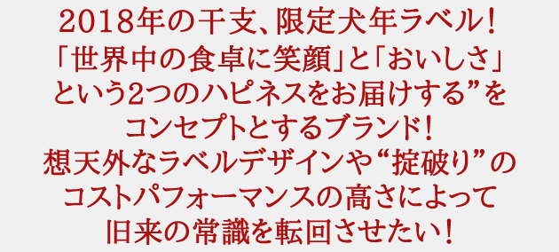 「ラ・グランハ」は、「世界中の食卓に「笑顔」と「おいしさ」という2つのHAPPINESSをお届けする」ことをコンセプトとするブランドで、2009年6月に仏ボルドー市で開催された「VINEXPO」で発表されて以来、瞬く間に同社のベストセラーに駆け上がりました。ユーモアあふれるラベルの絵は、スペインの高名な現代画家であるエンリケ・トリホスが特別に描いたもので、アラゴン州ウエスカの農村で生まれ育った彼が、子どもの頃身近に接した動物たちがベースになっています。