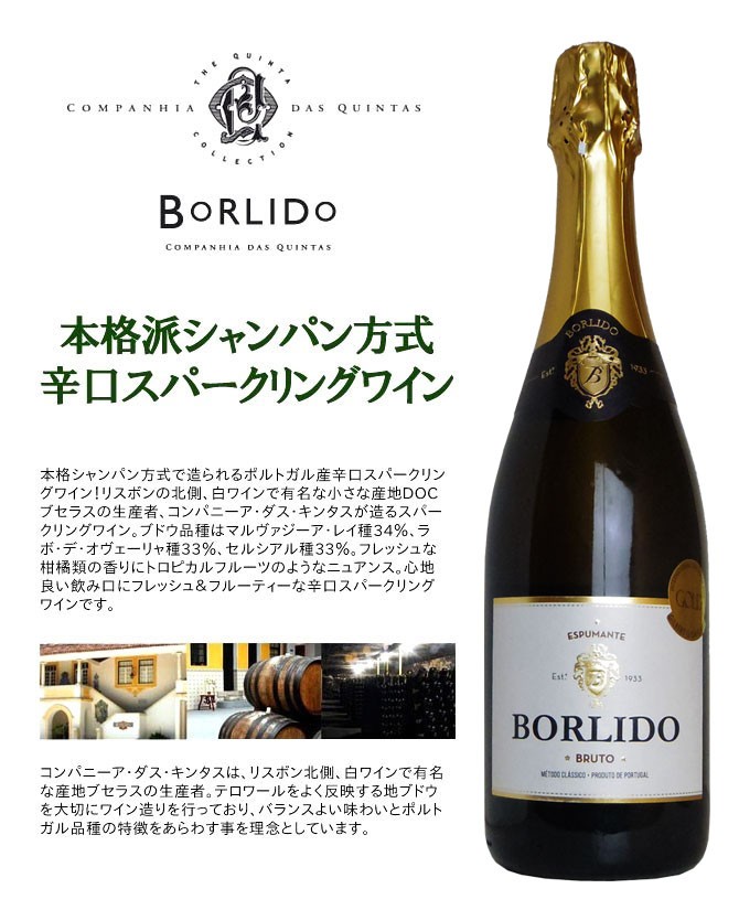 ボルリード ブリュット ポルトガル N.V シャンパーニュ方式(瓶内二次発酵) コンパニーア ダス キンタス