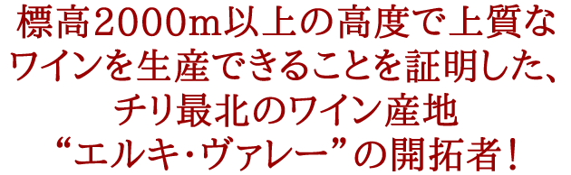 イタリア・トレンティーノから移住したアルド・オリビエ・グラモラが、1998年に設立したビーニャ・ファレルニア。それまでは彼はブランデー会社を経営していましたが、エノロジストのジョルジオ・フレサティとの出会いがきっかけで、ビーニャ ファレルニアを設立し、ワイン造りを始めました。二人は「それまでの生食用やブランデー(ピスコ)用の葡萄しか造られていなかったこの地でワイン造りを始めることは革新的な出来事だった。情熱と技術、チリの大学のアグロノミストのサポートによって、チリの主要な生産地からはるか遠く離れたエルキ ヴァレーを、計り知れないポテンシャルを持つ素晴らしいワインを生む葡萄畑へ変貌させるという目標が、原動力になっている」と考えています。※写真アルド・オリビエ・グラモラ氏とジョルジオ・フレサティ氏