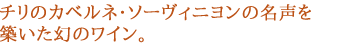 リリース後まもなく豪華客船クイーン・エリザベス2世号のワインリストに載せられ、90年代にはワイン・スペクテーター誌の世界年間ベスト100の12位(ヴィンテージ1993)に指名されるなど、瞬く間に南米最高峰の評価を獲得。チリのカベルネ・ソーヴィニヨンの名声を築いた幻のワインです。