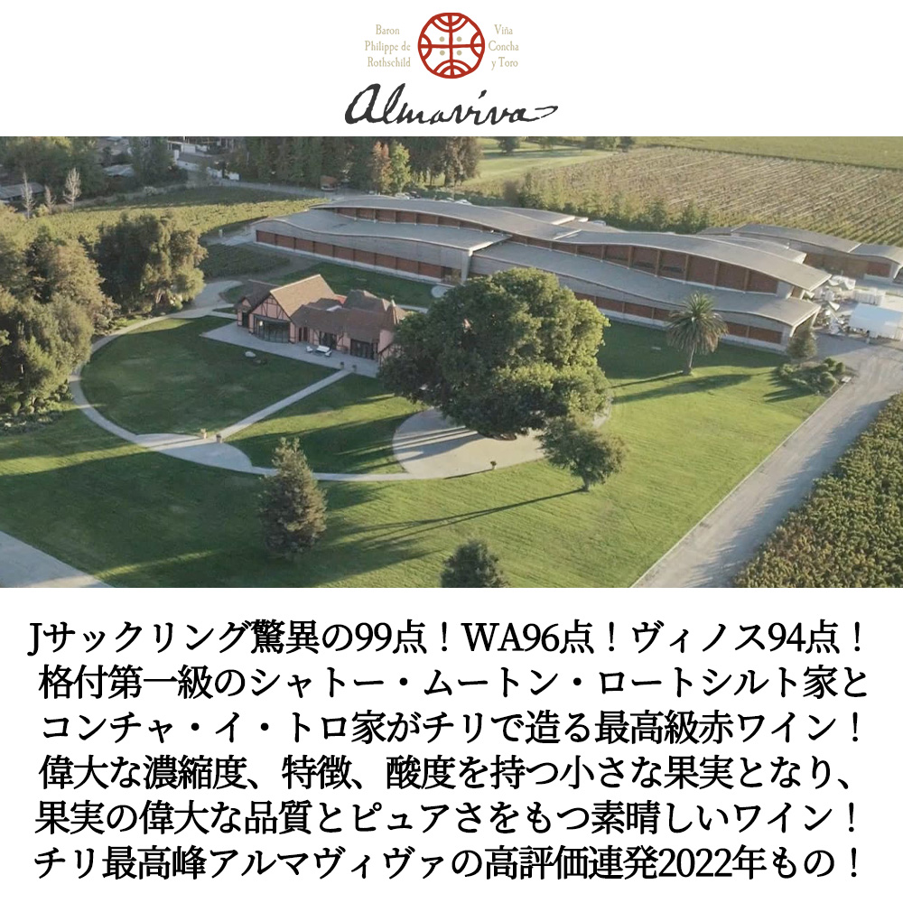 メドック格付第一級のシャトー・ムートン・ロートシルト家 (バロン・フィリップ・ロートシルト) とコンチャ・イ・トロ家がチリ (チリ南部のプエンテ・アルトの畑でコンチャ・イ・トロ社とバロン・フィリップ・ド・ロートシルトにより生産される超プレミアムチリワイン。) で造る、最高級フルボディ赤ワイン!