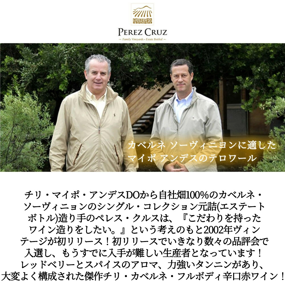 チリ・マイポ・アンデスDOから自社畑100%のカベルネ・ソーヴィニョンのシングル・コレクション元詰(エステートボトル)愛好家大注目!