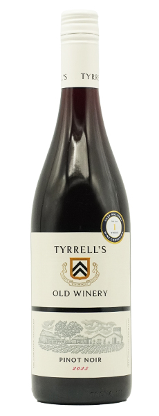 ティレルズ オールドワイナリー ピノ・ノワール 2025年フレンチオーク樽100%で12ヶ月熟成。熟したイチゴやクランベリー、プラムのアロマに、スパイスや森の香りにほんのりバニラ香。クリーンな酸ときれいな果実味の辛口ピノ・ノワール
