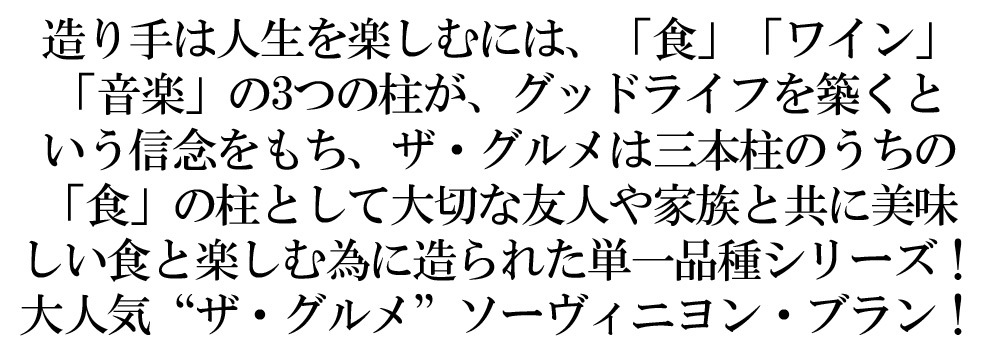 ザ・グルメは三本柱のうちの「食」の柱として、大切な友人や家族と共に美味しい食と楽しむ単一品種シリーズです。