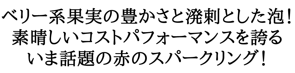 南オーストラリア州のシラーズ種を中心にブレンドされた、お食事に合わせやすい赤いスパークリングワインです。 ブラックベリーの香りに微かなバニラのニュアンス。ベリー系果実の豊かさと溌剌とした泡が特徴的な、芳醇な味わい。