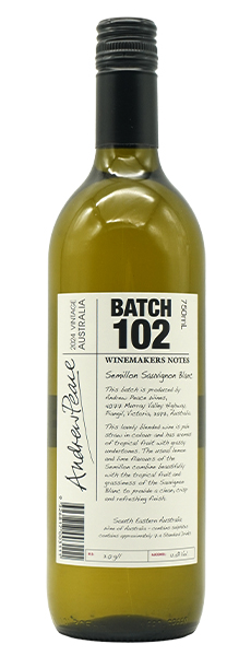 ワインメーカーズノート セミヨン ソーヴィニヨン・ブラン バッチ102 2024年 アンドリュー・ピース選別、除梗、破砕後、圧搾されたブドウは、温度コントロールされた低温のステンレスタンクの中でじっくりと発酵されました。熟成の一部にはオークを用いています。トロピカルフルーツのアロマに微かに草原を思わせる香りが混じります。レモンやライムの味わいが、トロピカルフルーツや草原のようなニュアンスと素晴らしく調和しており、キリッとした後味に仕上がっています。