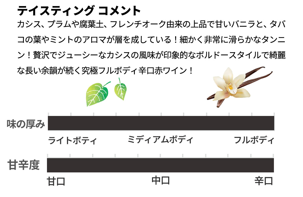■ぶどう品種: カベルネ・ソーヴィニヨン70%、メルロー17%、マルベック13%