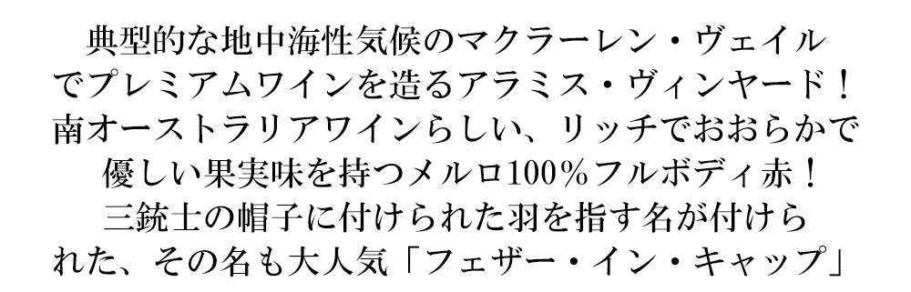 世界最古のブドウの木が栽培されることで知られ、典型的な地中海性気候のマクラーレン・ヴェイルでプレミアムワインを造る注目生産者アラミス・ヴィンヤーズの南オーストラリアワインらしい、リッチでおおらかで優しい果実味を持つワイン!