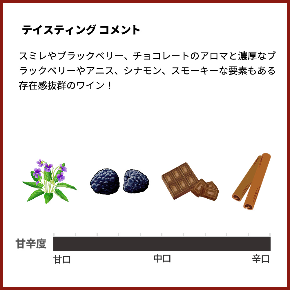 リヴァリーナG.I.からのパワフルな赤!スミレやブラックベリー、チョコレートのアロマと濃厚なブラックベリーやアニス、シナモン、スモーキーな要素もある存在感抜群のワイン!メタル調ラベルも人気のメタル・デュリフが待望入荷!