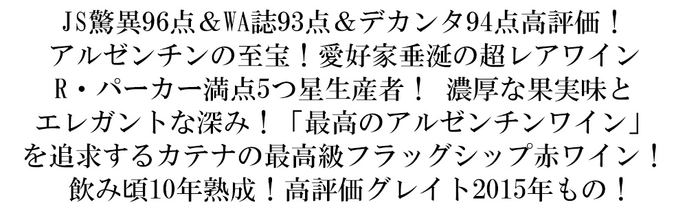 入手困難!アルゼンチンの至宝!フルボディ辛口赤ワイン愛好家垂涎の超レアワイン!「最高峰のアルゼンチンワイン」を追求する、“カテナ”のフラッグシップワイン!