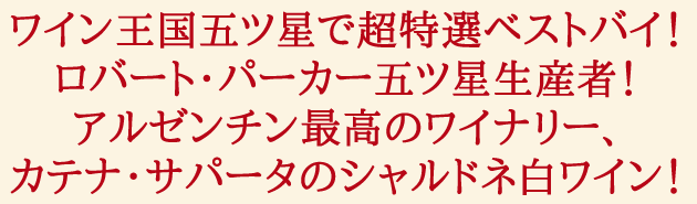 カテナ・アラモス・シャルドネ 2024年輝きある色調で香りの第一印象は複雑さを感じる。トロピカルフルーツ系の香りと樽からくるヴァニラやカラメル、程よく燻したナッツの風味、バター、キノコなどの香りがある。味わいは、バランスがよく果実味が広がりハイレベルな酸が長く続く。余韻の苦味も心地よい!