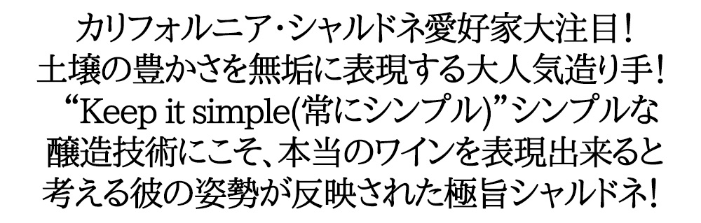 土壌の豊かさを無垢に表現する造り手…醸造家マイケル・アレイは学生時代からワイナリーで経験を積みガロやオークリッジワイナリーを経て現在に至る。彼の哲学には“Keep it simple(常にシンプル)”。