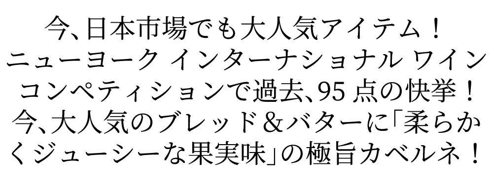 ブレッド&バター・カベルネ・ソーヴィニヨン[2023]年・ノースコート&ローダイ・カベルネ・ソーヴィニヨン・(50%アメリカンオーク、50%フレンチオークで9ヶ月熟成)・ブレッド&バターワイナリー・正規品 ブドウはソノマ・カウンティー、カーネロスAVAとモントレー・カウンティー、アロヨセコAVAの畑から収穫しています。全てマロラクティック発酵。 赤系果実の香り、そのにほのかな杉、燻香、月桂樹のニュアンスが感じ取れます。甘美な果実のブーケは味わいにも健在。そこに樽感、塩漬肉の柔らかなフレーバー。長く優雅なきめの細かい余韻は、まるでワインが溶けてしまったかのようなです。 バーベキュー、サーモン、ウズラ、羊肉、風味豊かな料理と。