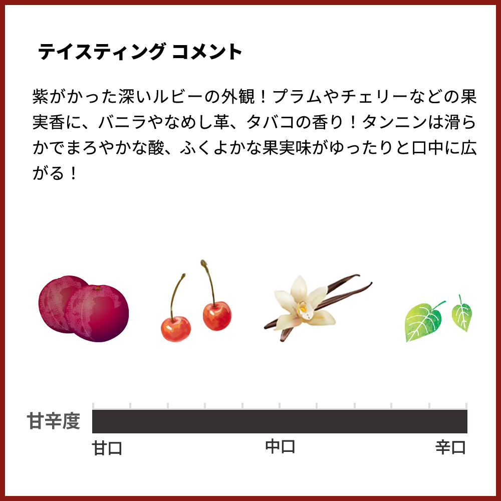 常にお手軽ながら、豊かな果実味やオークのニュアンスが感じられる、満足感の高い味わいのワインです!