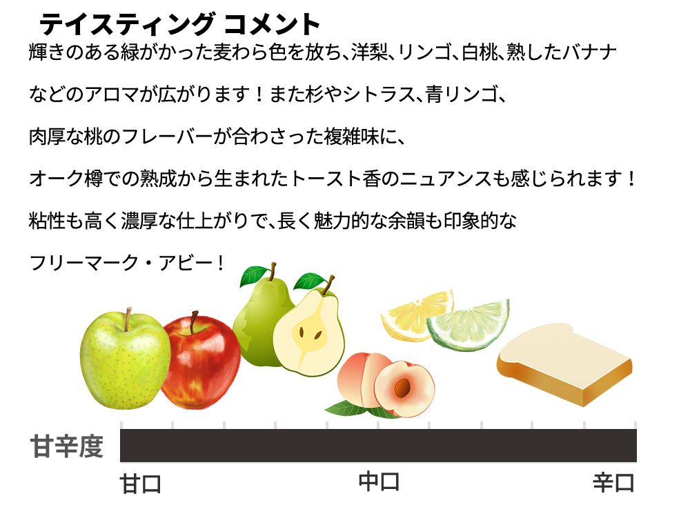 フリーマーク アビー ナパ ヴァレー シャルドネ 2018 フリーマーク アビー ワイナリー AVAナパ ヴァレー 白 辛口 750ml ■ぶどう品種:シャルドネ100% ■発酵・熟成:フレンチオーク樽(新樽47%)で、残りをステンレスタンクで発酵/澱につけたまま10ヶ月熟成 市場では味わえない希少作品!ナパで16番目に設立されたワイナリーで、ナパのワイン産業発展に大きく貢献し続けてきたフリーマーク・アビー! 1976年パリスの審判出展に選出された12のナパのワイナリーのうちの1つとして有名で、しかも唯一の赤・白両方のワインを出展したワイナリーとしても有名に! 1985年にはラザフォードのカベルネ・ソーヴィニヨン造りに特化してきたスペシャリストで天才ワインメーカー、テッド・エドワーズ氏を迎え入れさらに品質も人気も急上昇! 彼の創造力あふれるワイン造りと、彼のナパヴァレーの畑での経験の長さ特にラザフォードとが掛け合わさり、彼はこのエリアを導くワインメーカーとしてだけでなく、最も長くナパのカベルネにこだわるワインメーカーとして活躍! まさにラザフォードに根付いたワイナリー“フリーマーク・アビー・ワイナリー”の看板シャルドネ!