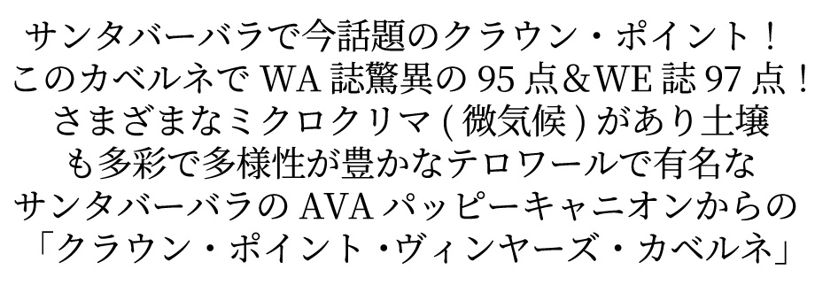 クラウン ポイント ヴィンヤーズ カベルネ ソーヴィニヨン 2016 カリフォルニア サンタバーバラ カウンティ