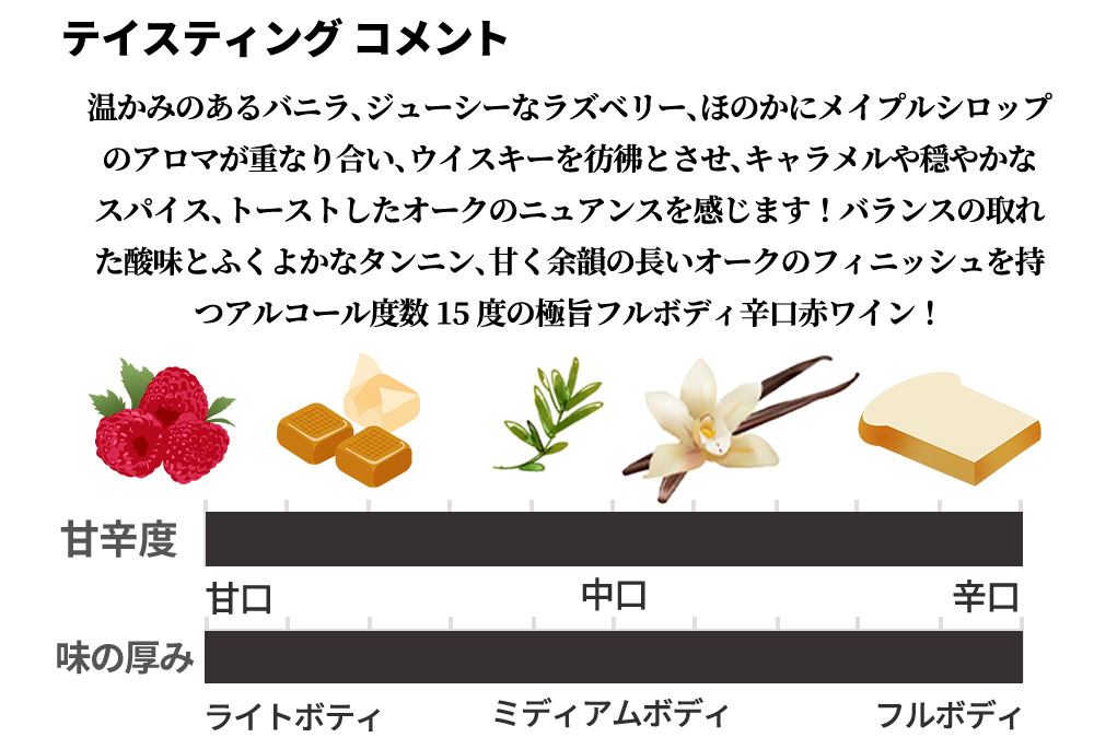 ■発酵・熟成:ステンレスタンクで天然酵母醗酵(MLF有)/ 一部ウイスキーバレルで最低2ヶ月熟成/ その他木樽&ステンレスタンクで12ヶ月熟成